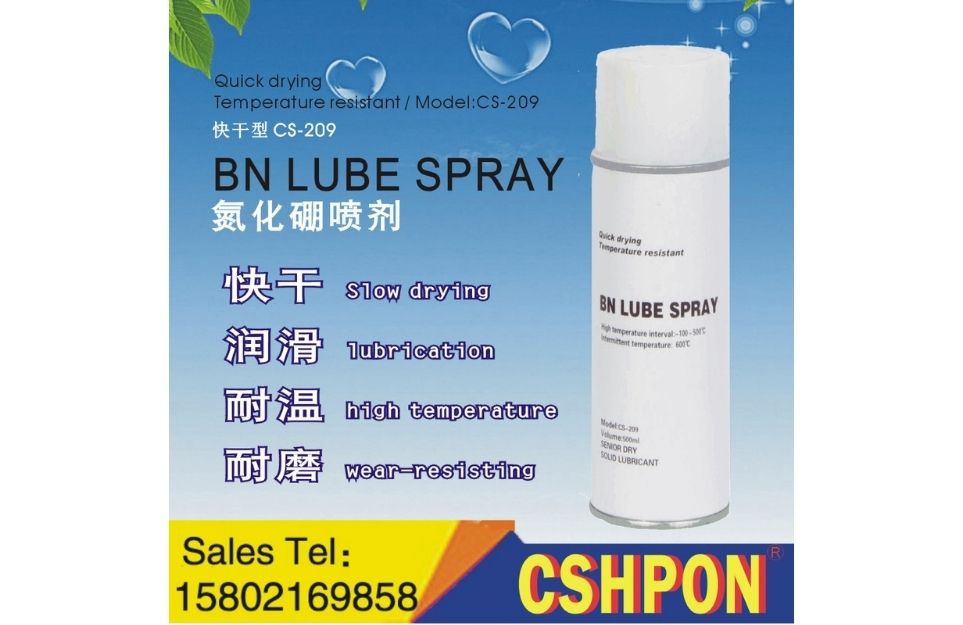 Boron Nitride (BN) Lubricant Spray is high-temperature resistant. It remains excellent lubricating prosperities even under high temperatures. BN lubricant spray is non-toxic/polluting, eco-friendly and high-pressure resistant. It has high chemical inertness, low coefficient of friction, thermal shock/corrosion resistance, corrosion and good thermal conductivity.