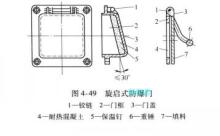 旋啟式防爆門如圖1所示。它是一種利用白重密封的防爆門,一般材料是鑄鐵,門蓋上涂有耐熱混凝土。這種門的特點是能自動復位,即當爐膛或煙道內氣體爆炸的壓力所產生的力矩大于門的自重在門軸上所產生的力矩時,門蓋打開;壓力不足時則又自動關閉。